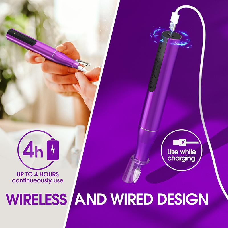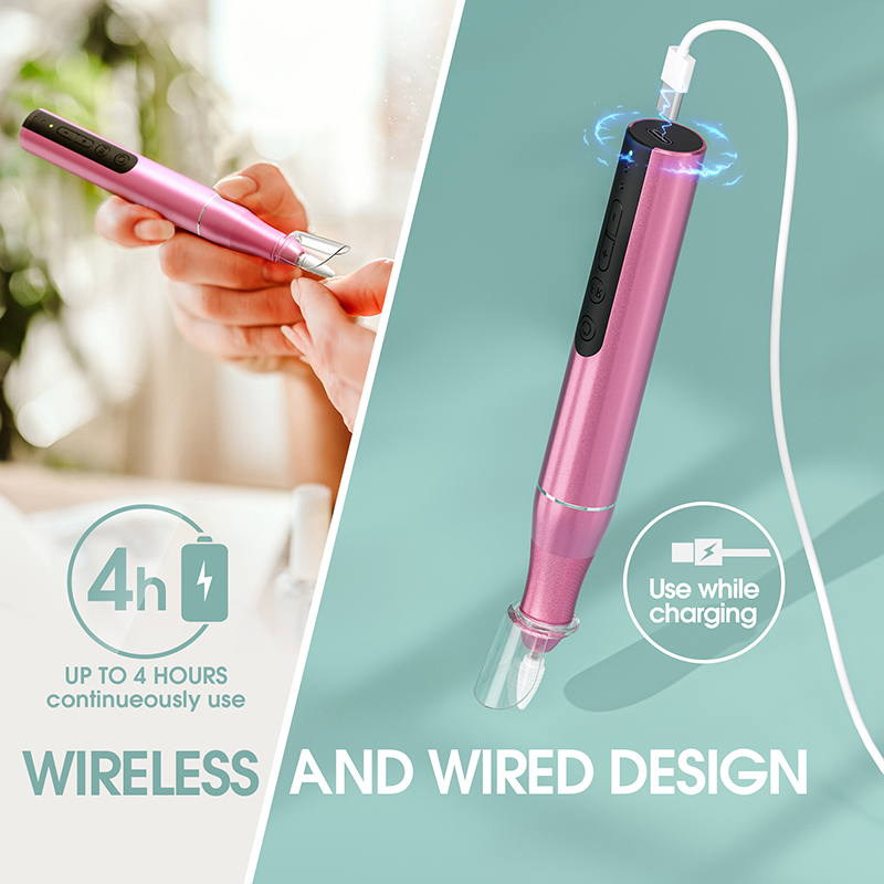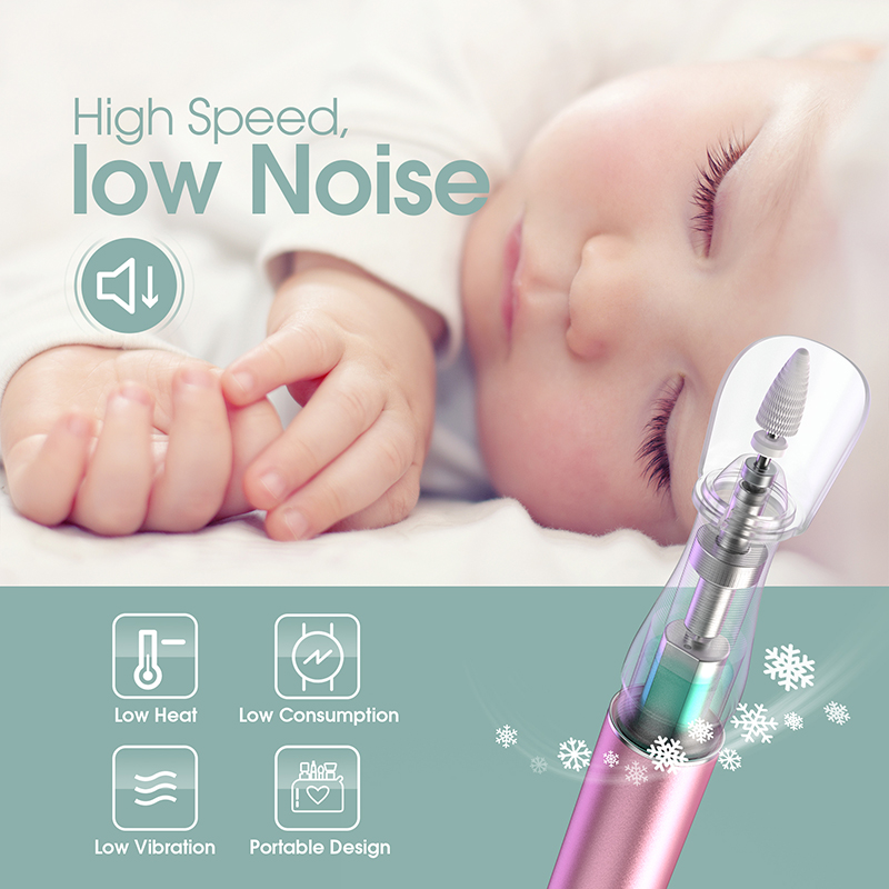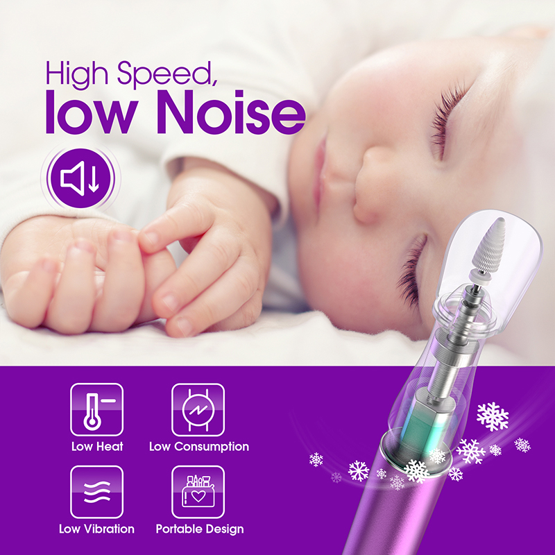 מקדחה חשמלית לציפורניים זו כוללת את גוף האלומיניום העדכני ביותר עם עיצוב נגד רטט, שיכול להפחית ביעילות את הרעש והחום בעת שחיקת ציפורניים, מה שמבטיח שלא תפריע לאף אחד בזמן ליטוש הציפורניים. המראה הארגונומי של העט גורם לאחיזה נוחה ללא החלקה ומאפשר לך להסיר ציפורניים ג'ל בקלות.