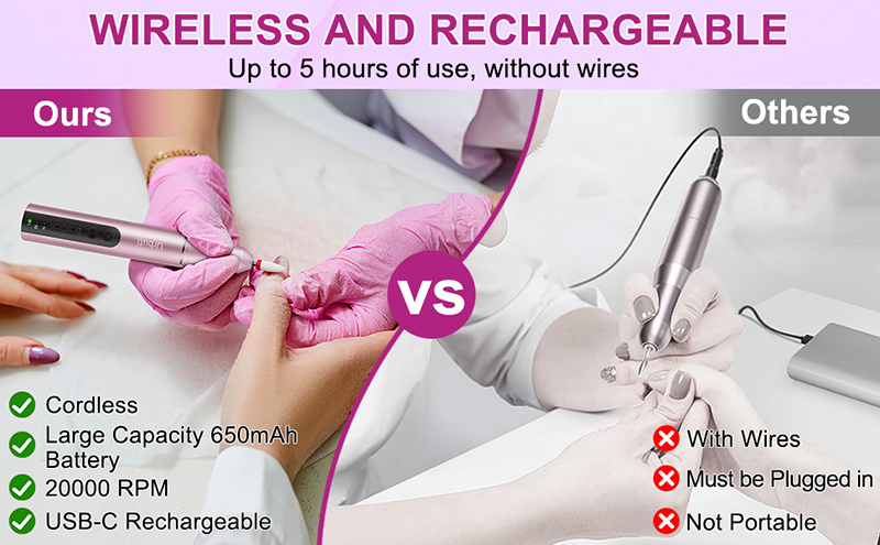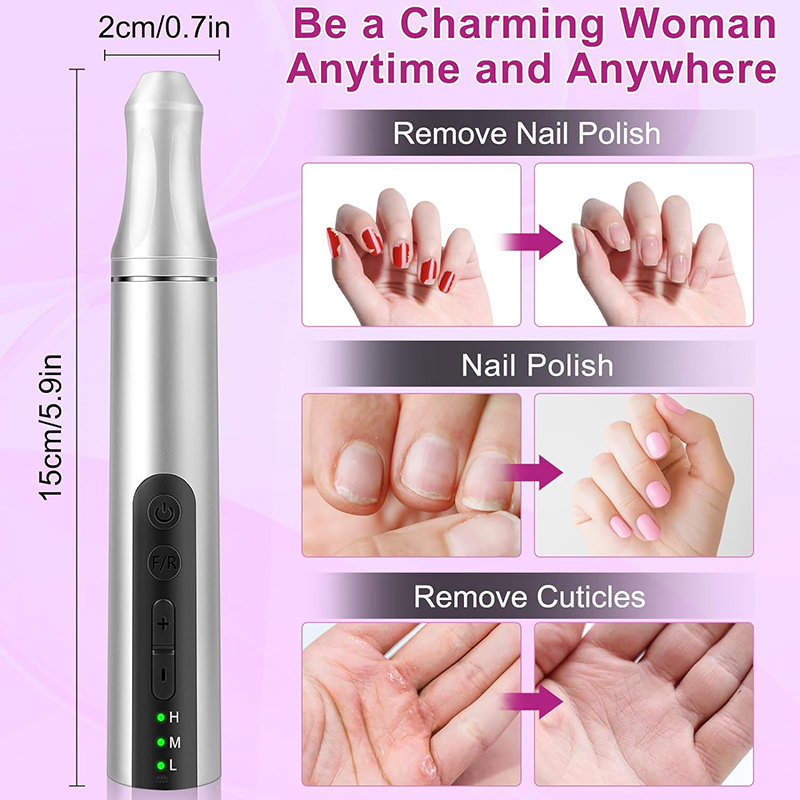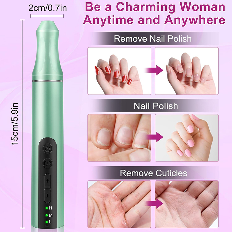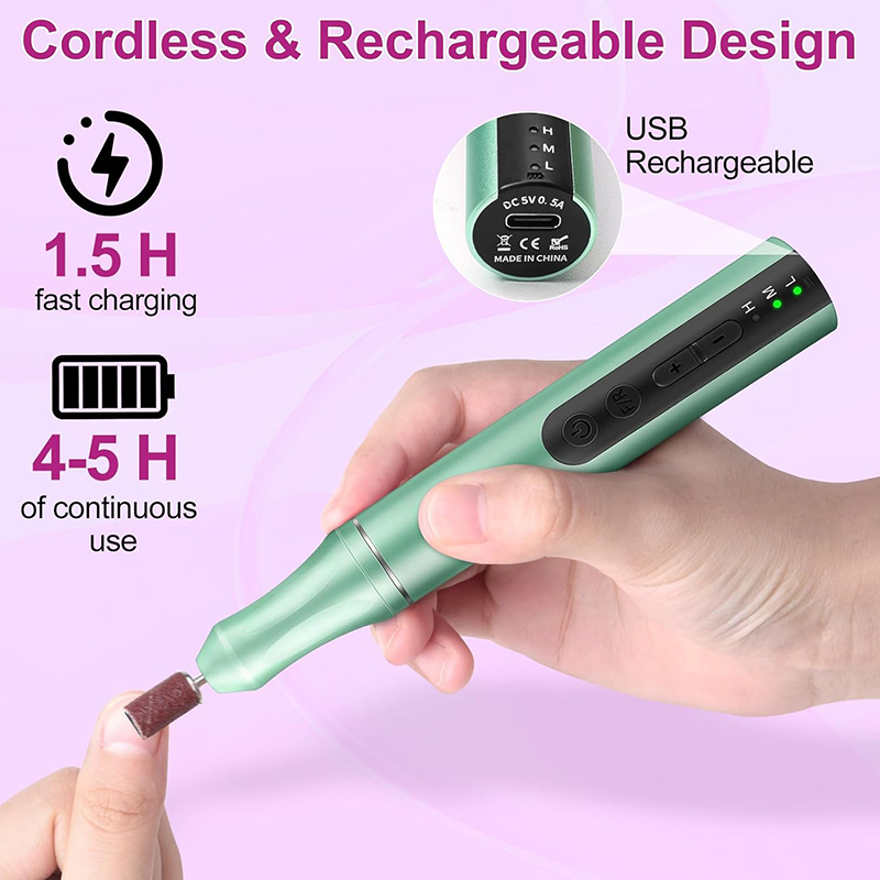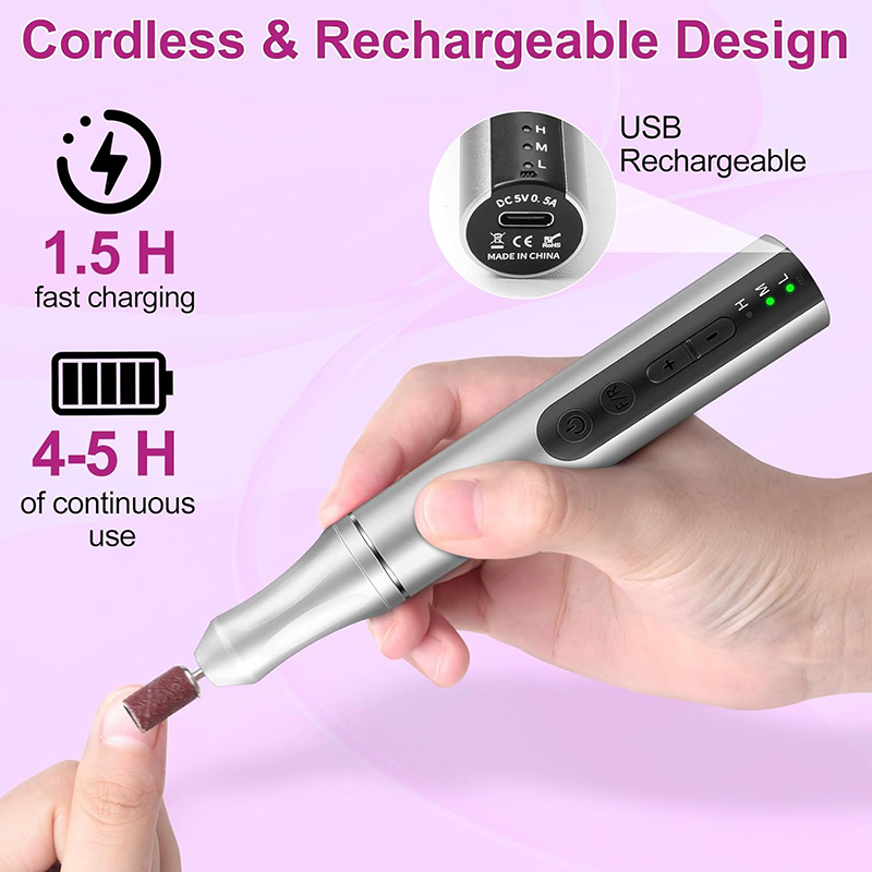 מקדחות ציפורניים לציפורניים אקריליות מיועדות להיות קלות משקל (85 גרם) ויכולות להכנס לארנק או לכיס הבגדים שלך. זה מגיע גם עם כבל טעינת USB שניתן לחבר בקלות לכל מכשיר USB לטעינה, מה שהופך אותו נוח לך ליהנות מטיפוח הציפורניים שלך בכל זמן ובכל מקום.