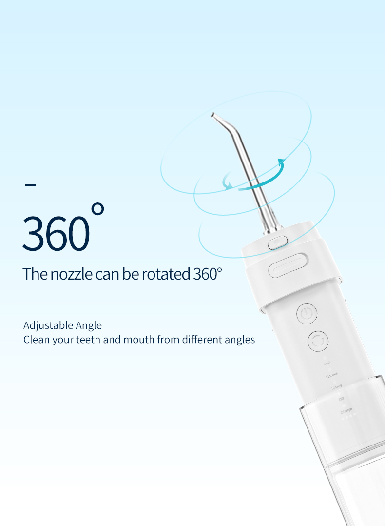ניקוי עמוק בלחץ חזק: חוט המים מאמץ את טכניקת הדופק העדכנית ביותר כדי להציע 4 מצבים עם טווח לחץ בין 30-90 Psi וקצב דופק של 1400-1800 פעמים לדקה, כדי להציע מים בעוצמה גבוהה המנקה 99.99% זן שיניים, שתוכנן במיוחד עבור פריודונטיטיס, פלטה.