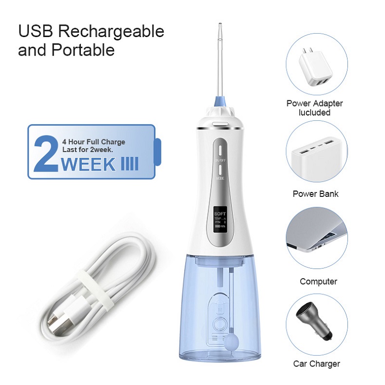 חוט דנטלי מים זה מתגאה בחיי סוללה כפולים משל אחרים עם סוללה חזקה ידידותית לסביבה. פשוט טען למשך 3 שעות ותיהנה מ-30 ימי שימוש. זה קומפקטי וקל משקל, מושלם לשימוש ביתי ובדרך. מרים זה מגיע עם כבל USB (מתאם לא כלול) מה שהופך אותו לערכת נסיעות אידיאלית. תהנה מחיי סוללה ארוכים במיוחד של 30 יום, מה שהופך אותו לפתרון נייד באמת לנוחיותך