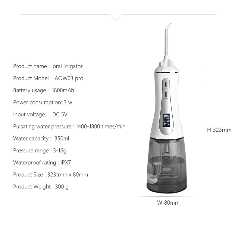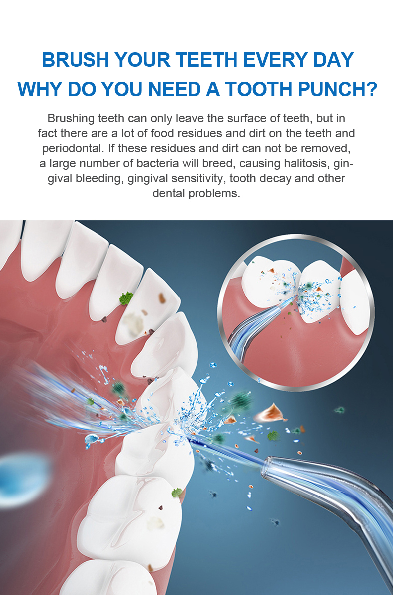מרים שיניים מים זה מספק פעימות לחץ מים גבוהות בקצב של 1400-1800 פעמים בדקה, ומסיר ביעילות 99.9% מהרובד הדנטלי לניקוי שיניים עמוק. מעסה שיניים מים זה מעסה את החניכיים, מקדם את זרימת הדם ומטפל בבעיות פה כמו ריח רע מהפה, שיניים יישור שיניים