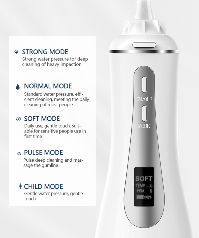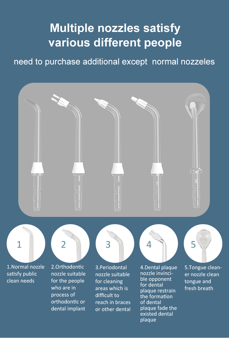 הערכה מקצועית על ידי צוות רופאי שיניים אמריקאי, ה-Flosser שלנו מספק חמישה מצבים נוחים כדי להתאים לצרכים שונים של 99% קבוצות גיל שונות, תוך הבטחת ביצועים ותוחלת חיים מיטביים. הידית הארגונומית שלו ו-6 החרירים הניתנים להחלפה מבטיחים חוויה נוחה ורב-תכליתית. זה מהווה מתנה מתחשבת לימי הולדת, חג ההודיה של חג האהבה לחג המולד או לשמירה על בריאות הפה של יקיריכם