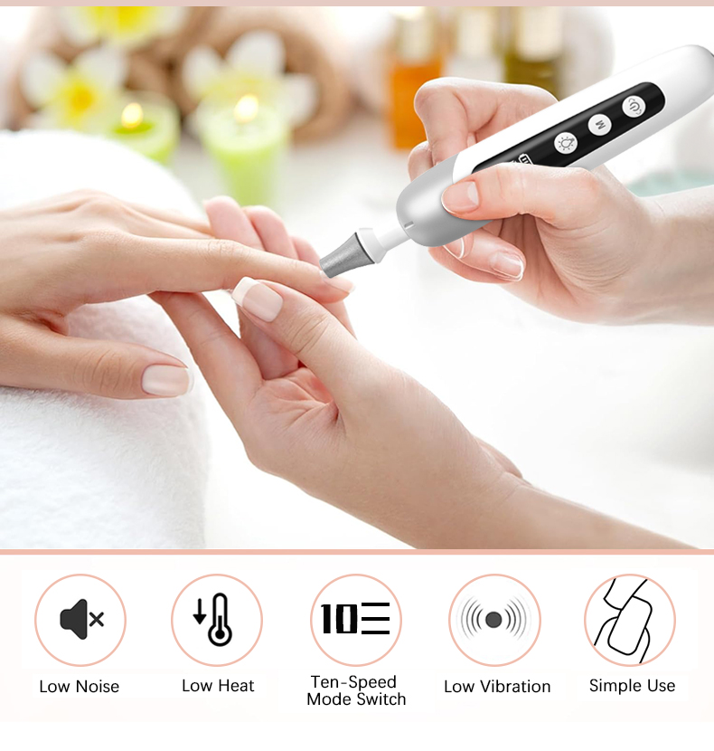 - 10 הגדרות מהירות: חווה את העוצמה של ערכת המניקור החשמלית שלנו, הכוללת 10 הגדרות מהירות פרוגרסיביות וסיבובים מגוונים עם כיוון השעון ונגד כיוון השעון. מקדחה לציפורניים אפיל מבטיחה שיוק מדויק על ציפורניים עבות וציפורניים עבות ומותאם לכל סוגי העור, כולל אנשים עם סוכרת