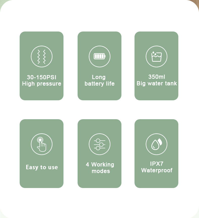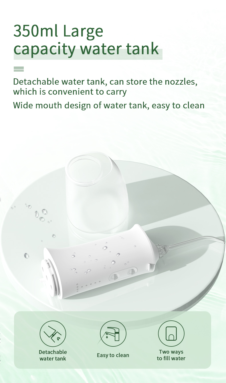 חוט דנטלי מים זה כולל מיכל מים משודרג של 350 מ"ל, קיבולת כפולה מדגמים ישנים אחרים, מבטל את הצורך במילוי תכוף והופך את ניקוי הפה שלך לנוח ויעיל יותר.