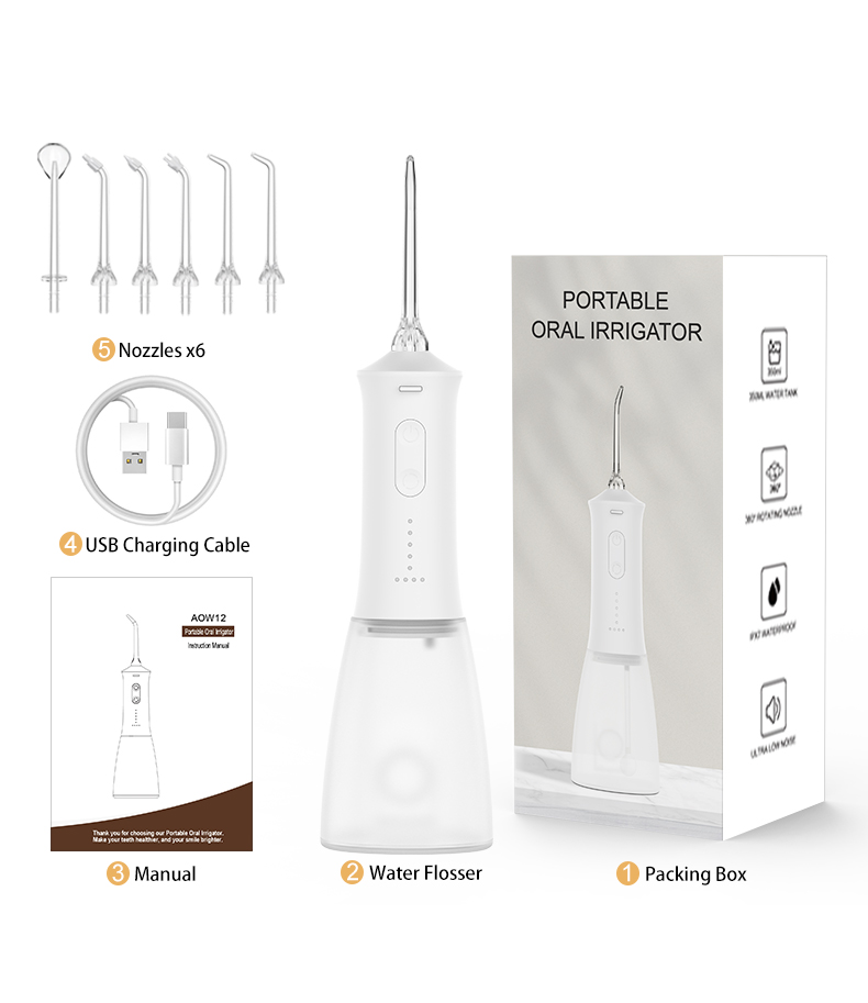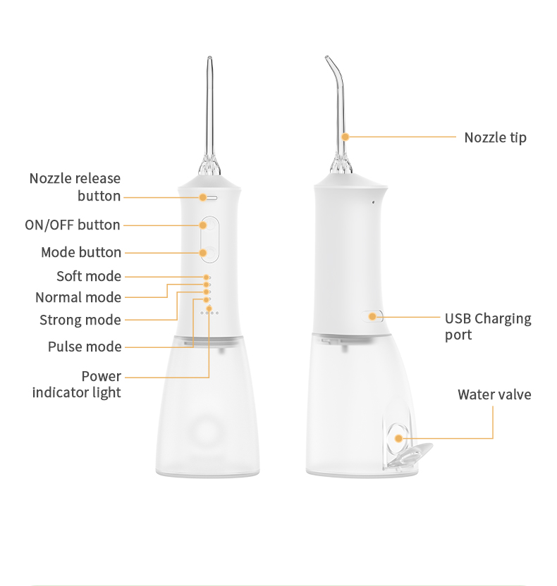 שם מוצר: משקיית פה ניידת טעינת USB נטענת סילון מים Flosser עמיד למים Ipx7 שיניים